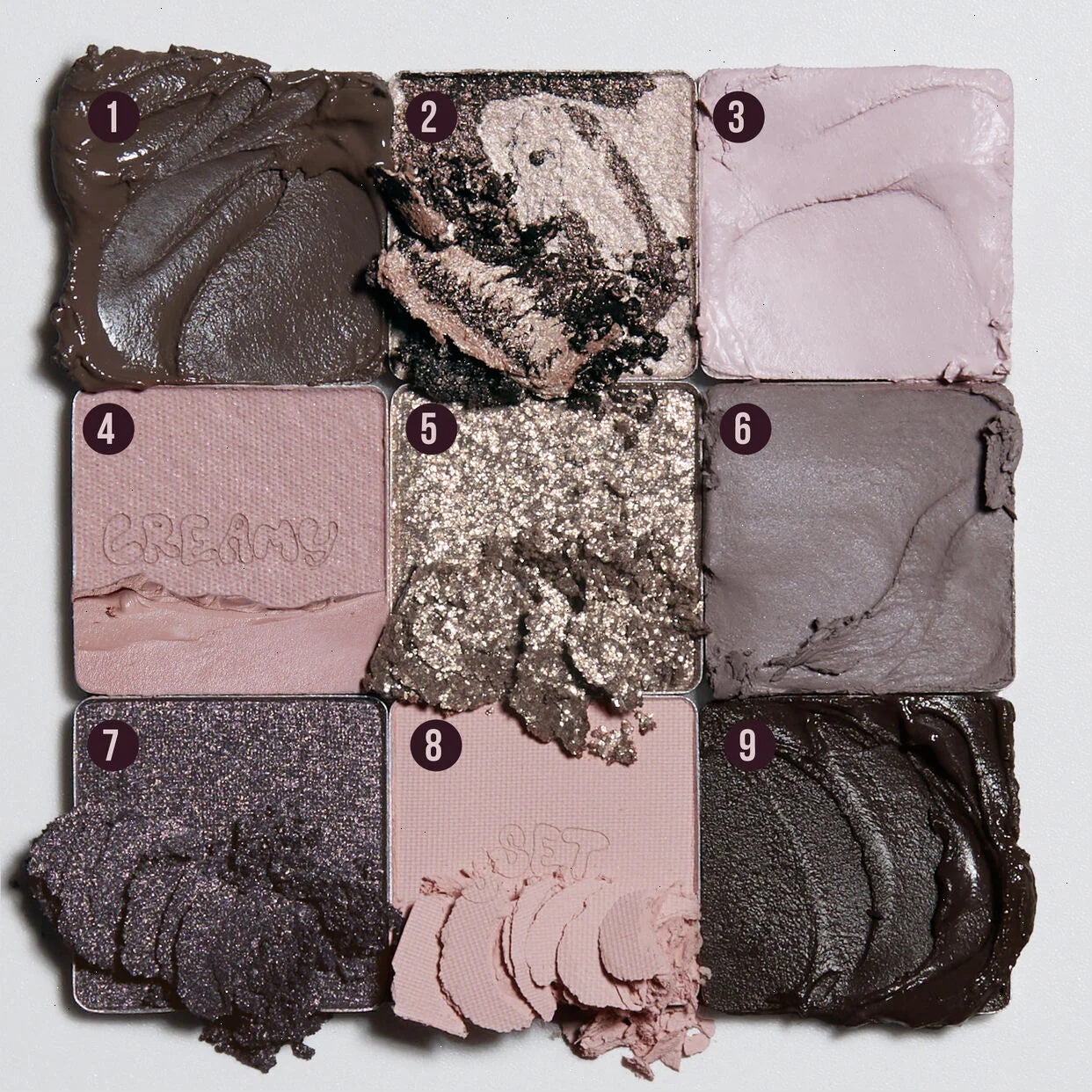 These creamy palettes include four different types of innovative shadows and formulas! From bouncy cream-to-mattes with sensorial textures that transform from creams to soft powder with a matte finish – use these powders alone as a base or to build intensity to a look. The cream-to-metallic shades have a unique formula that, when used as a standalone color, has a major impact and, as a topper, gives a glittery finish. Our cream-to-marble powders have abstract swirls that create transformative color and texture for a velvety feel and a multidimensional finish! Lastly is the ‘set’ powder, a super thin, velvety, translucent powder to set your look in place – all day!